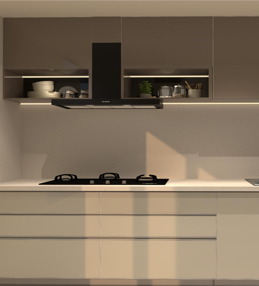 Throughout the residence, the layered lighting scheme enhances both the functionality and aesthetic appeal of each space, resulting in a cohesive living environment that seamlessly blends comfort with sophisticated style.