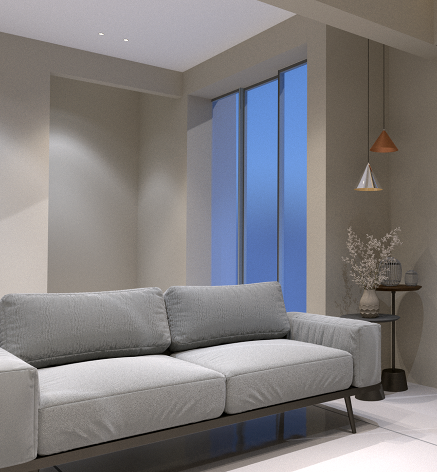 This refined 1,800 square foot residence demonstrates contemporary elegance through its thoughtfully integrated design elements. The living spaces feature streamlined furnishings in sophisticated neutral tones, complemented by ambient LED lighting and floor-to-ceiling drapery.