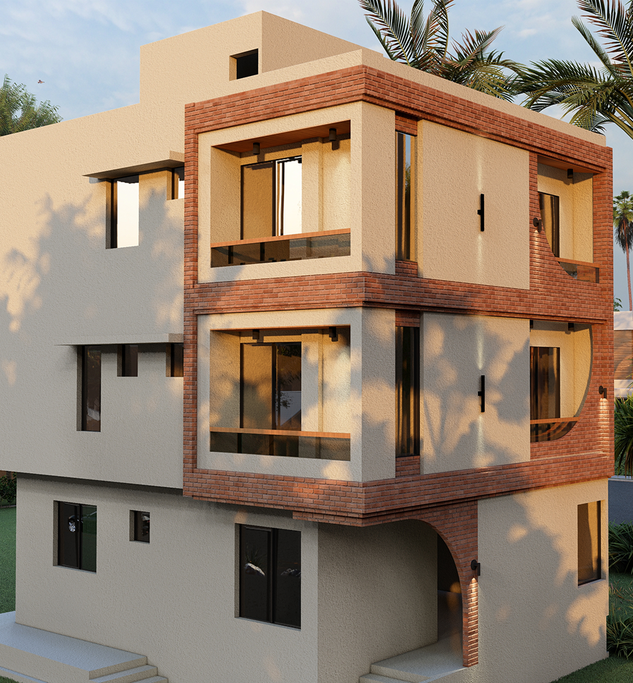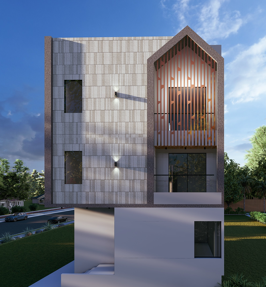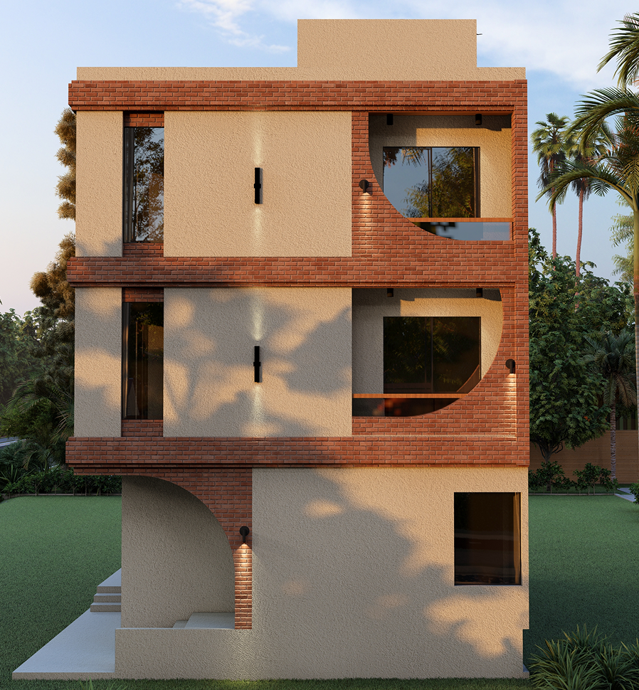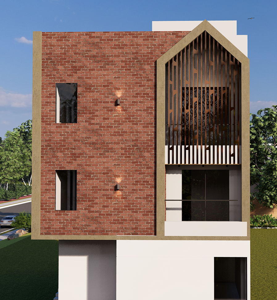 This modern bungalow features 6 bedrooms, a spacious living room, a puja room, and a study, blending functionality with aesthetics for comfort and seamless space flow.