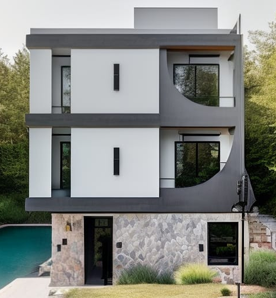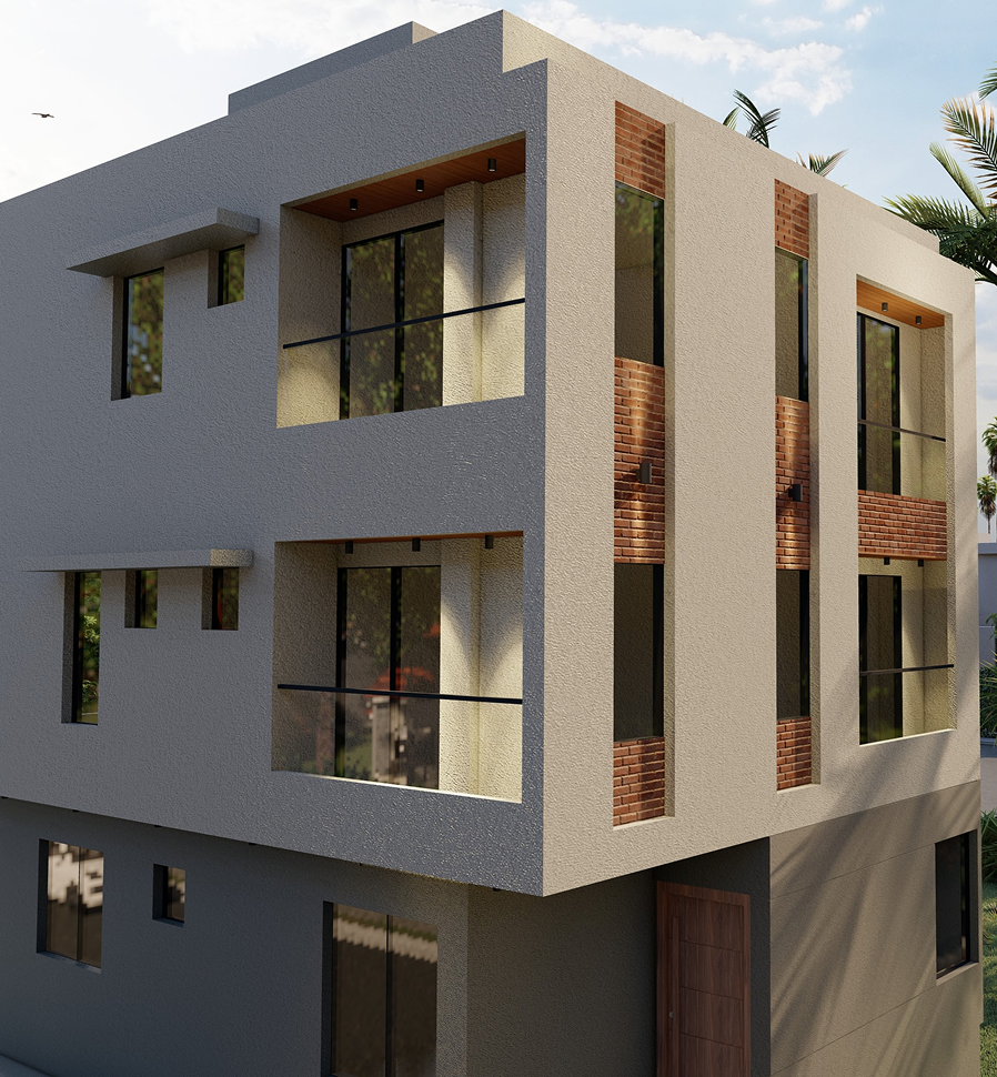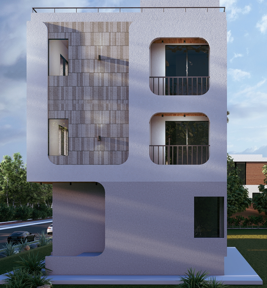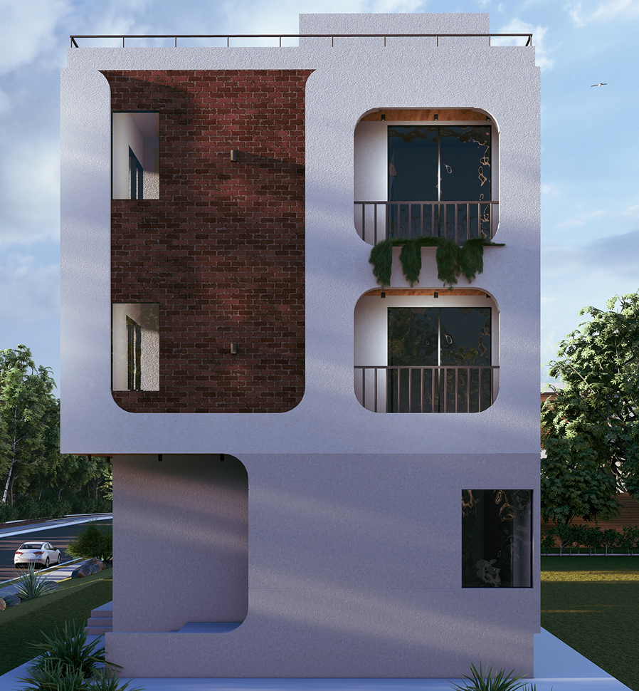 This modern bungalow features 6 bedrooms, a spacious living room, a puja room, and a study, blending functionality with aesthetics for comfort and seamless space flow.